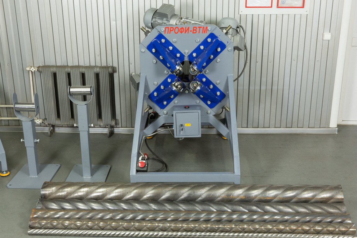 Станок отличается простотой использования, прочностью конструкции и универсальностью. На одной стороне станины станка «ПРОФИ-ВТМ», смонтирован усиленный люнет, на противоположной стороне установлены три ползуна с накатными роликами и мотор-редуктора. Накатные ролики изготавливаются из стали 9ХС и проходят цикл термообработки. Они универсальны и подходят для проката всех диаметров труб.
