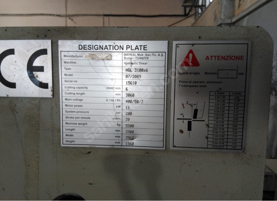 Ножницы байкал 3000х6 мм 2009 года выпуска Б/У - Продам в Стамбуле