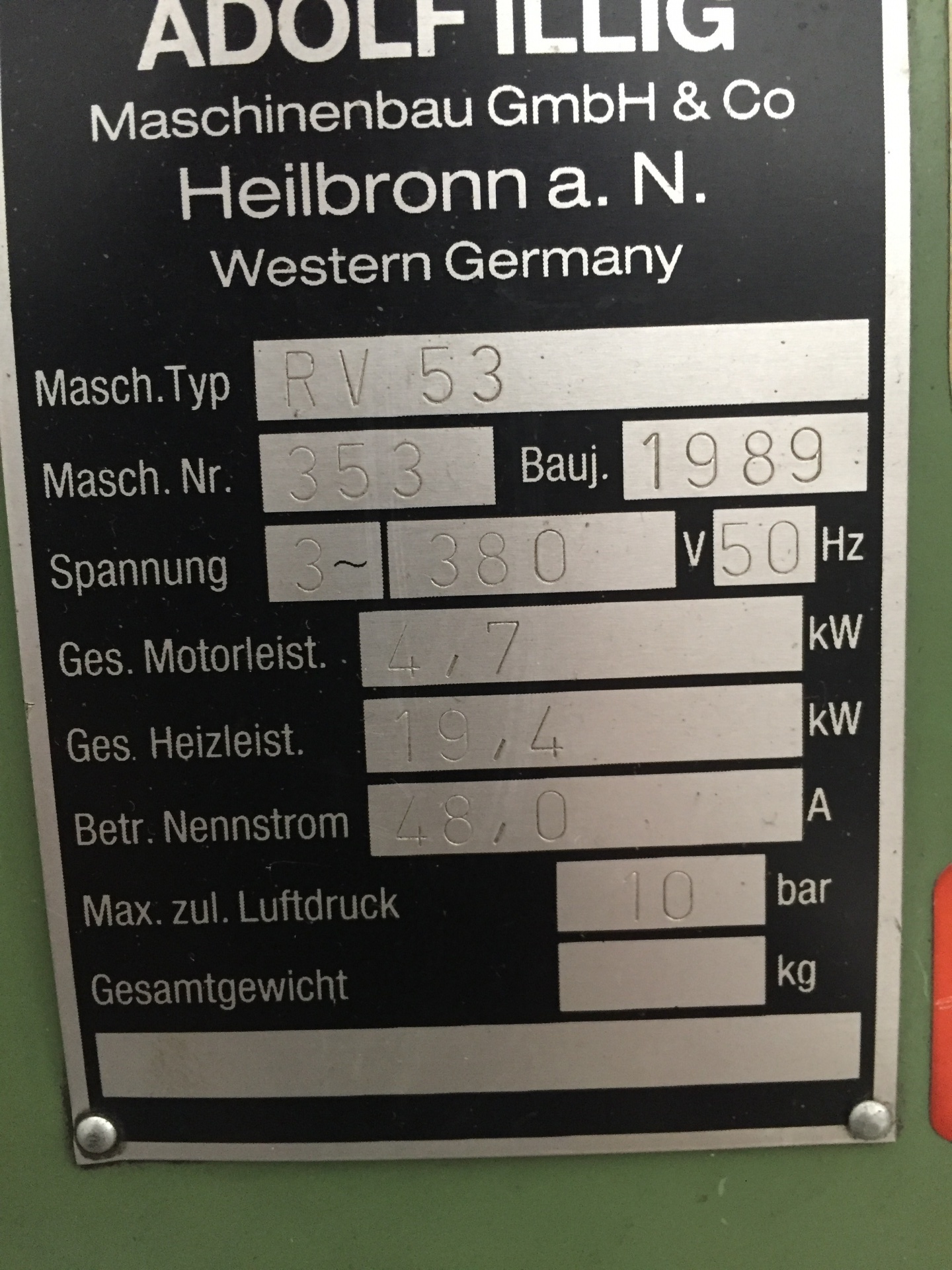 Состояние: Б/У Год выпуска: 1989 Производитель: ILLIG / Welex (Германия)