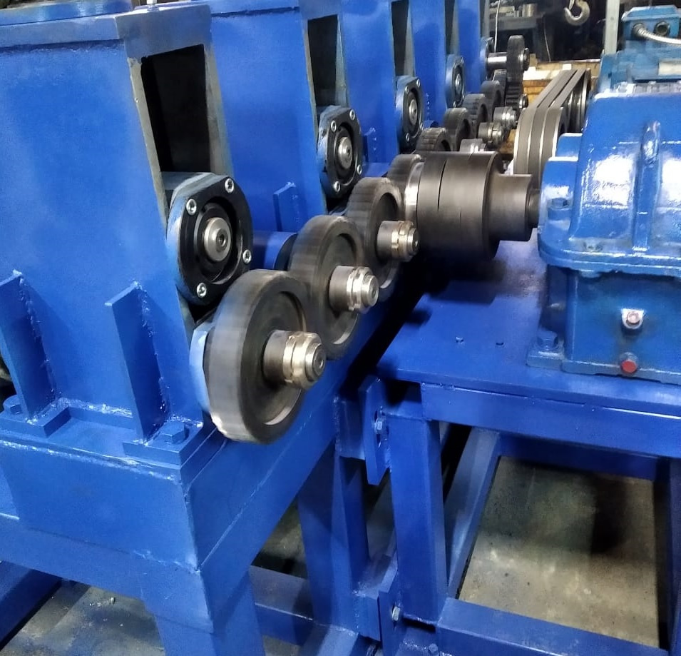 Производственная компания «Спецтехнология» осуществляет разработку и изготовление гибочно-прокатных станов. Гибочно-прокатный стан является компонентом автоматизированной линии производства профиля. Процесс формообразования гнутых профилей на станах заключается в последовательном изменении формы поперечного сечения исходной заготовки – ленты, листа или полосы, при прохождении её через ряд пар вращающихся навстречу друг другу приводных и холостых валков.