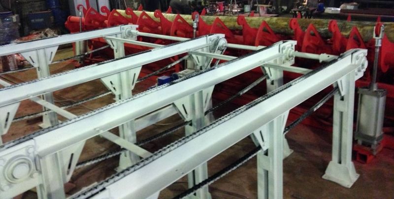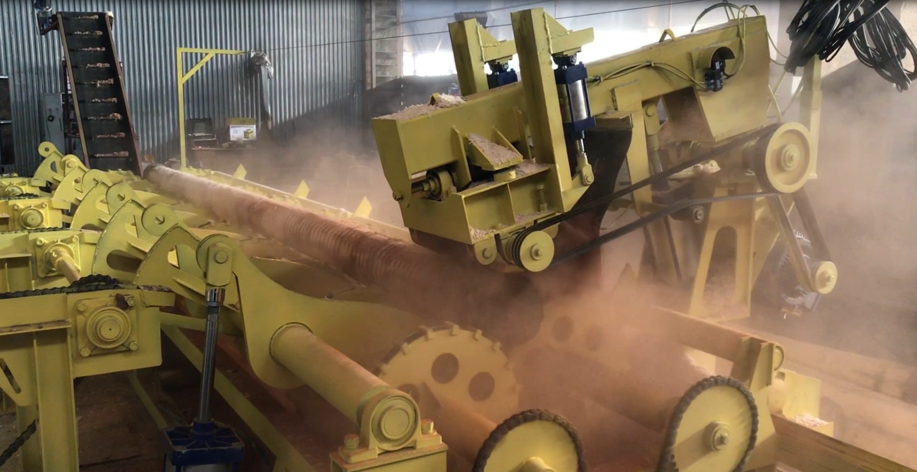 Станок комплектуется цепным конвейером подачи бревен и ленточным конвейером стружкоудаления.