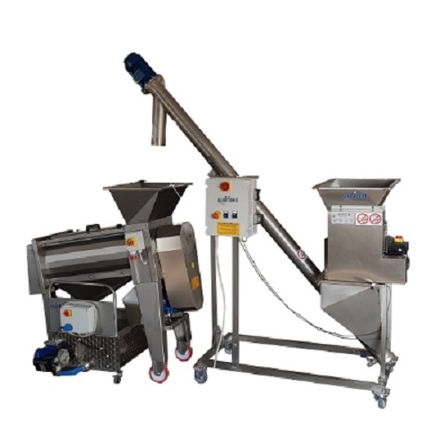 Плоды проходят мойку, после чего плоды должны быть надрезаны и засыпаются в приемную горловину дробилки-сепаратора. Полученная после дробления плодовая мезга подается в приемник протирочной машины, где происходит отделение сока и косточек.