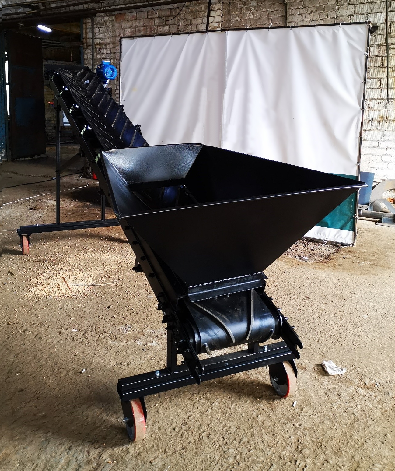 Конвейер ленточный предназначен для транспортировки (зерна, круп, гранул, силосной массы, овощей, щебня, песка, цемента, строительных отходов и т.д.), кусковых, штучных материалов и других продуктов влажностью до 14%.