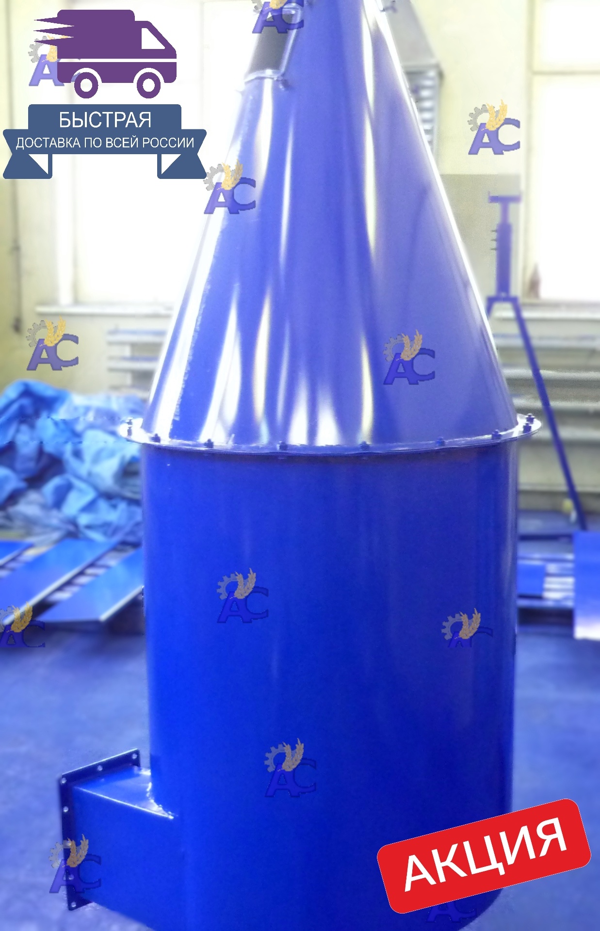 Разгрузители типа БЦР предназначены для отделения сыпучих материалов (зерна, комбикормов, гранул) от потока воздуха при пневматической подаче и их выгрузка.