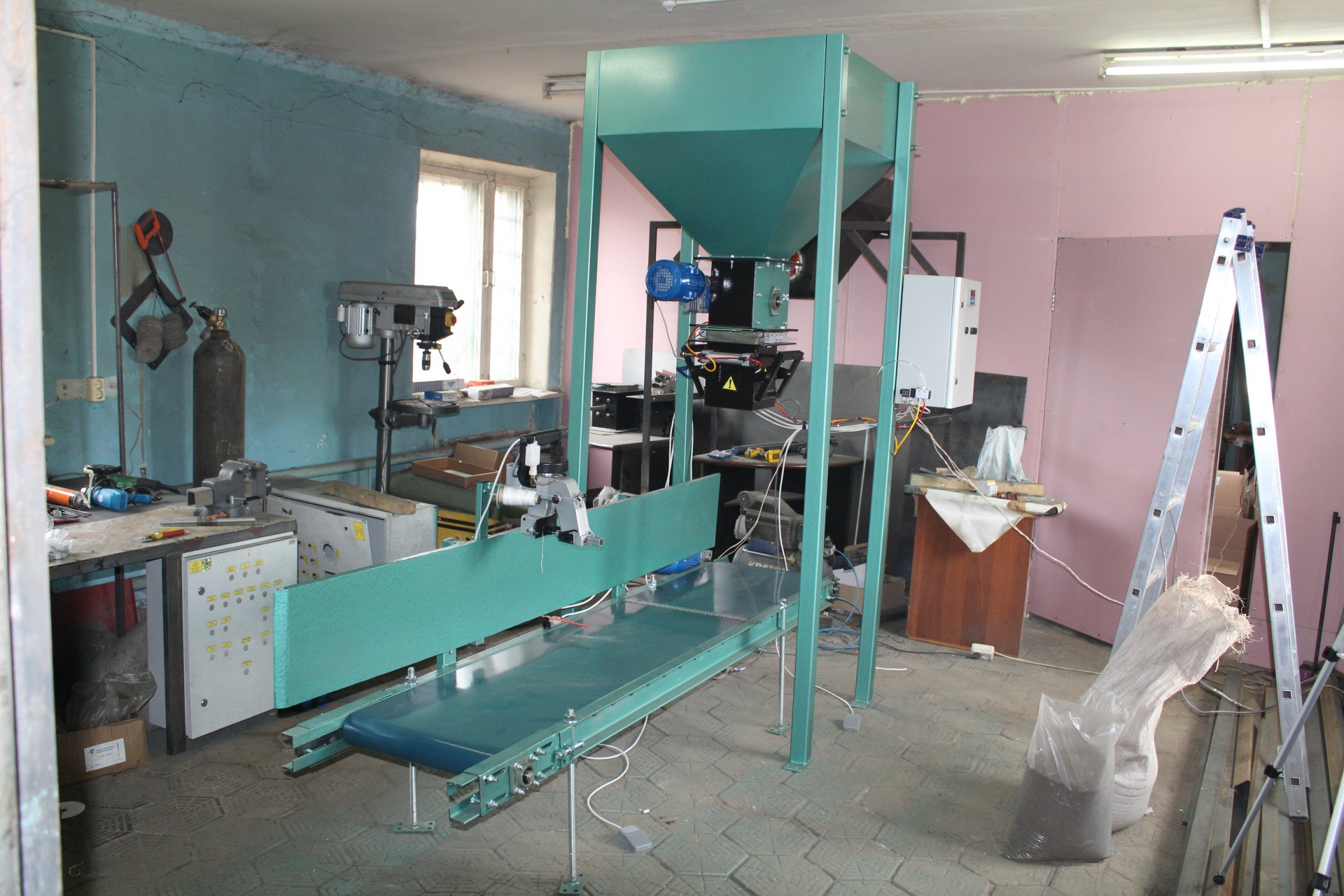 Фасовочный дозатор, весовое дозирование сыпучих продуктов с пневматическим зажимом мешка до 50 кг, оборудование, автоматы