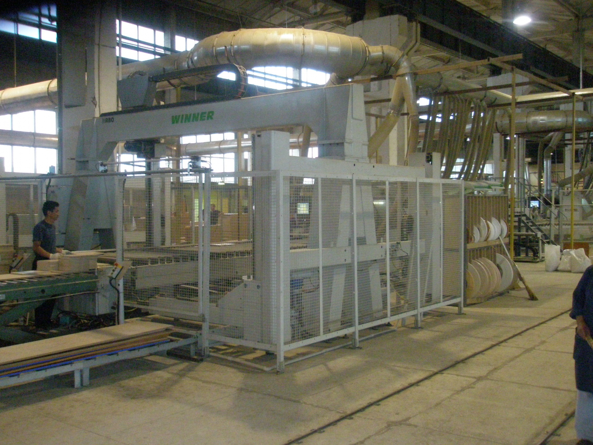 Угловой центр раскроя панелей с автоматической загрузкой с электромеханического подъемного стола. Для этого станка требуется один оператор, не считая операций по разгрузке и загрузке используемого материала.