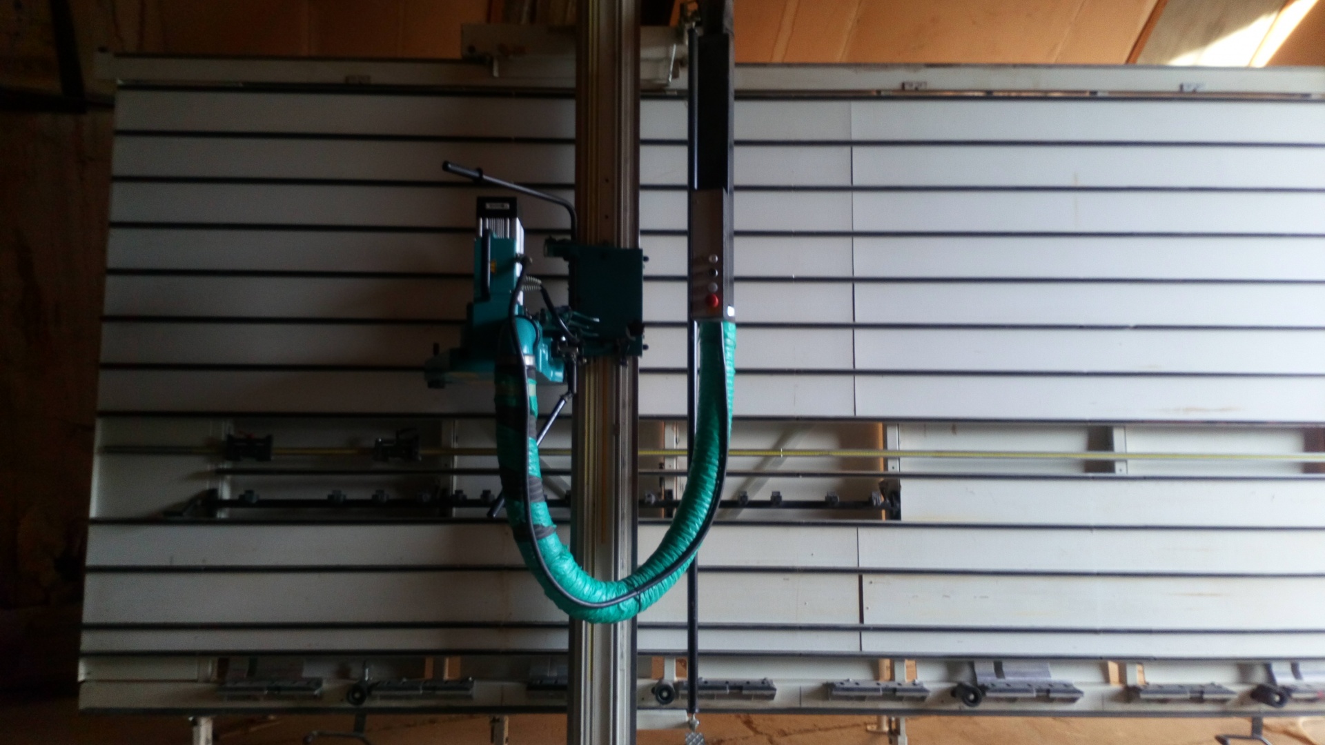 планками во время горизонтальных резов и поднимающиеся колеса для облегчения скольжения заготовок