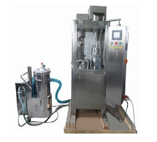 NJP-200 машина для наполнения капсул. Touch-Screen, панель управления программой PLC, обеспечивает полный цикл работы: подача пустой капсулы, ее раскрытие, наполнение порошком/гранулами/пеллетами, подсчет готовой продукции и в случае необходимости отбраковка.