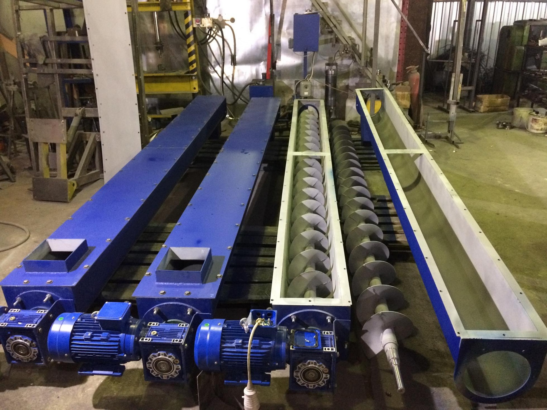 2. Конвейеры винтовые типа БКВ (шнек в желобе) для мукомольной и комбикормовой промышленности с диаметром винта от 80 до 1200мм с постоянным или переменным шагом.