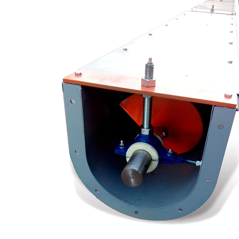 Винтовые конвейеры обеспечивают закрытый процесс перемещения продукта, компактность, возможность загрузки и разгрузки в ряде пунктов, отсутствие потерь транспортируемого зерна, реверсивную подачу продукта, безопасность в ремонте и обслуживании, малые энергозатраты. В конструкции винтовых конвейеров предусмотрена температурная компенсация шнека в осевом направлении, а также использование вынесенных за пределы корпуса подшипниковых узлов, что дает возможность использовать конвейеры для перемещения грузов с температурой до 90°С. В подшипниковых узлах используются роликовые радиально упорные подшипники, позволяющие конвейеру перемещать продукты с большим удельным весом (песок, цемент и т. п.). Конструкцией подвесных подшипников предусмотрена возможность быстрой замены деталей трения, не разбирая конвейер.