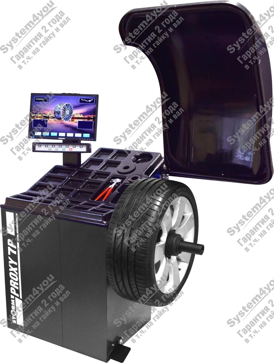 Станок балансировочный СТОРМ Proxy-7p - прецизионное (высокоточное) устройство, которое применяется для балансировки колес легковых автомобилей, микроавтобусов и легких грузовиков с диаметром диска до 30 дюймов и шириной до 20 дюймов.