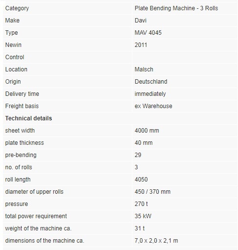 Вальцы 4000 мм, трехвалковые гибка до 40 мм Б/У - Продам в Baden-Baden
