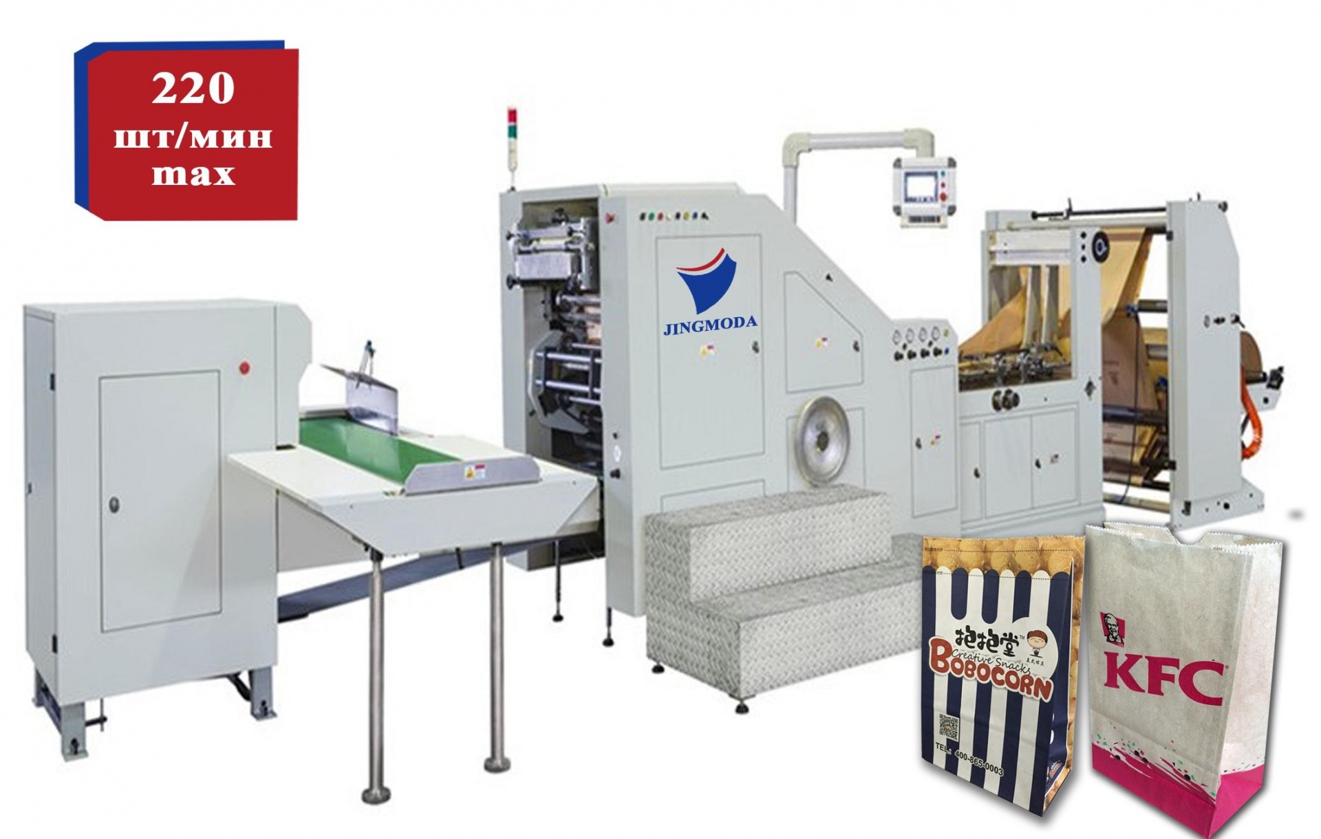 Машина JMD-S32B предназначена для изготовления бумажных пакетов c П- образным дном.