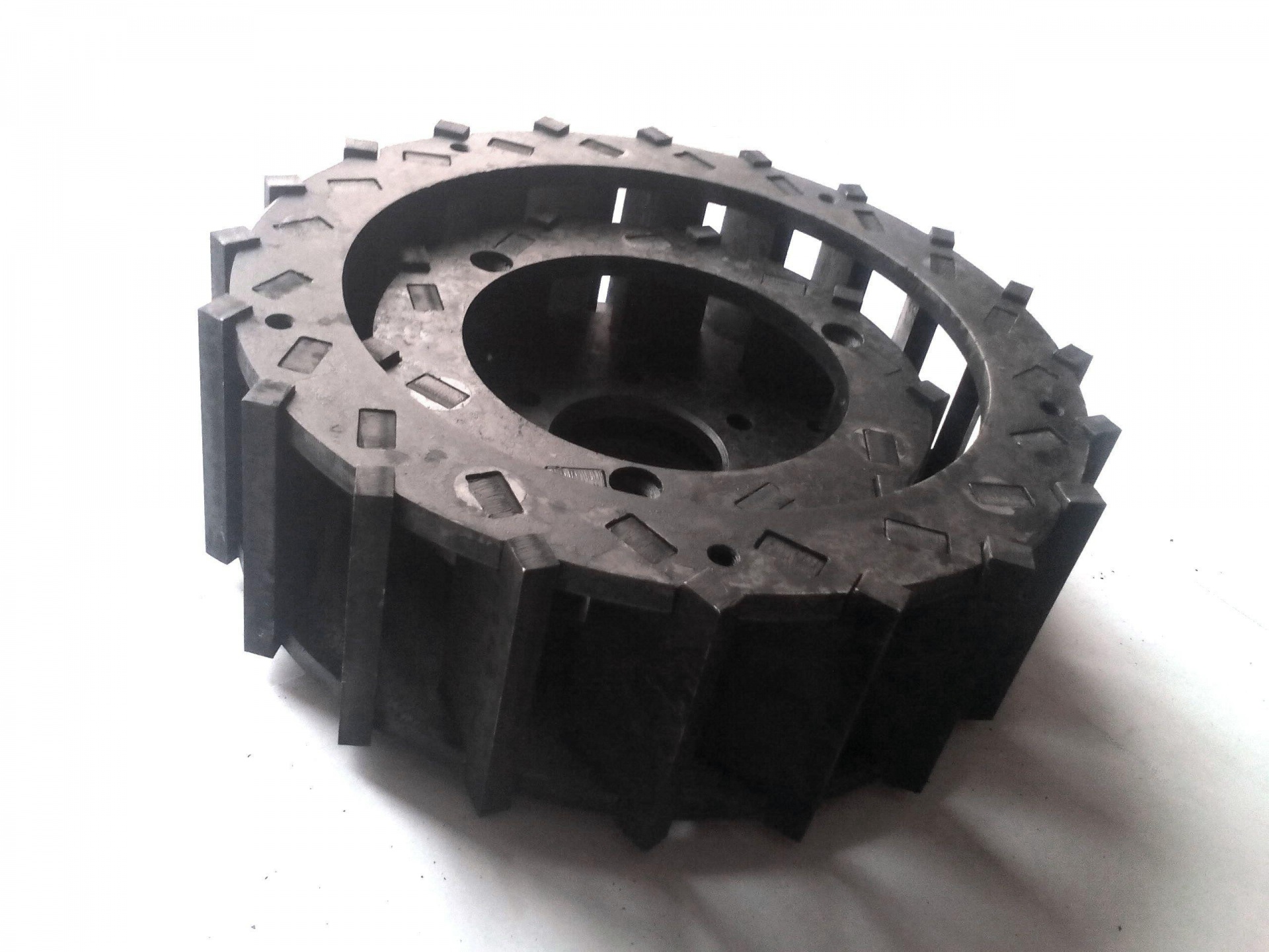 Все части узлов подверженных высокоабразивной нагрузке производим на высокоточном оборудовании с ЧПУ из конструкционных и легированных сталей, в зависимости от толщины деталей можем предложить из наличия стали 45, 50 или 65Г. Процедура термической обработки (включая закалку и отпуск) всех частей является неотъемлемой, и проходит в камерных или проходных печах. Твердость всех узлов находится в диапазоне 48-55 HRC что исключает возможность сколов и полного разрушения деталей сохраняя высокую стойкость не только к высокоабразивным но и к непредвиденным ударным нагрузкам.