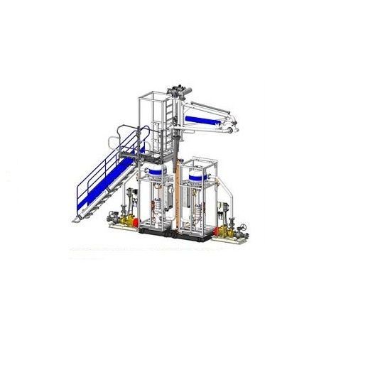 Комплекс измерительный АСН для дозированного налива светлых нефтепродуктов в автоцистерны с обеспечением коммерческого учета в объемных и массовых единицах при установке массового расходомера. Автоматизированная система налива АСН-12ВГ Модуль Ду 100 1/2 с возможностью налива 2-х продуктов через один стояк без смешивания, в комплектации объемными счетчиками или массовыми расходомерами, с насосом, с входной лестницей и перекидным трапом. Данный стояк налива АСН имеет отсек для обслуживания автоцистерны с одной стороны наливного островка и один отсек для автоцистерны с другой стороны.