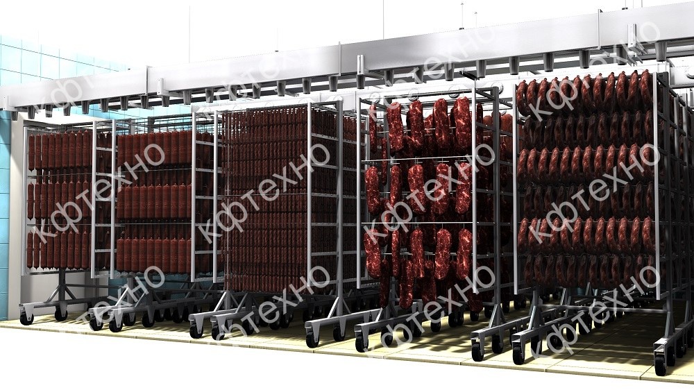 Климатические камеры копчения производства нашей компании выполнены с учетом всех новейших технологий в производстве сырокопченых колбас. Пульты управления значительно облегчают работу технологов и термистов, а так же подключаются к персональному компьютеру, на котором можно просматривать параметры камер не только в режиме реального времени, но и архивировать все процессы в виде таблиц и графиков. В климатических камерах копчения сырокопченая колбаса проходит этап первичной ферментации. В этой камере закладывается основа приготовления сырокопченой колбасы. И именно на этом этапе колбаса проходит полный цикл копчения. Последние разработки наших специалистов позволили комбинировать процессы, проходящие в камере копчения, и с легкостью переходить, при необходимости, от процессов с постоянным движением воздуха к процессам с работой по заданным параметрам и переменным режимом работы. Это позволяет сохранять максимум плюсов обоих технологий. Все оборудование для климатических камер копчения изготавливается индивидуально для каждого заказчика.