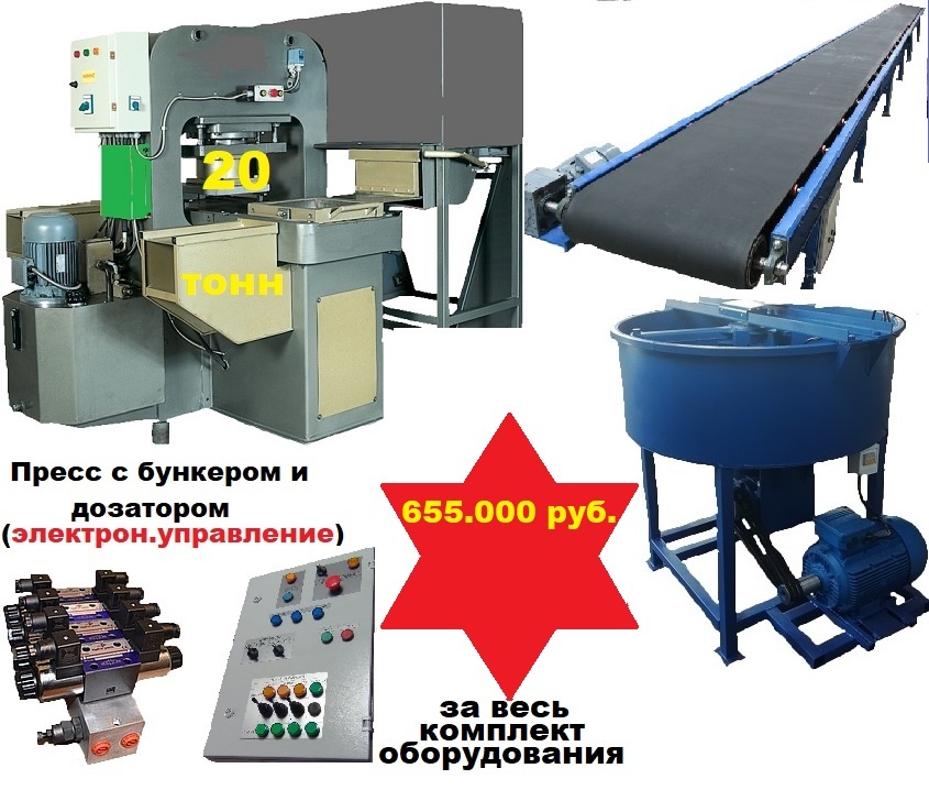 1.Пресс для производства плитки ( настенной, напольной, облицовочной, тротуарной ) от 10 до 20 тонн – от 150.000 руб. зависит от комплектации пресса.