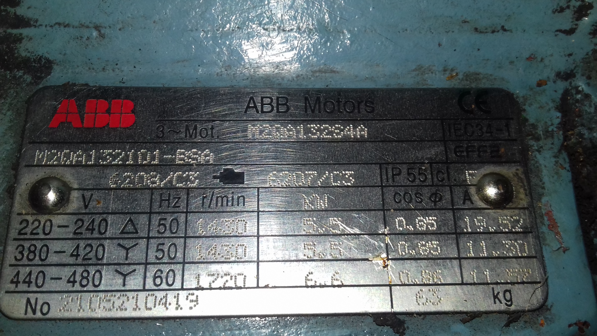 Электродвигатели трехфазные асинхронные ABB M2QA132S4A (2 шт).