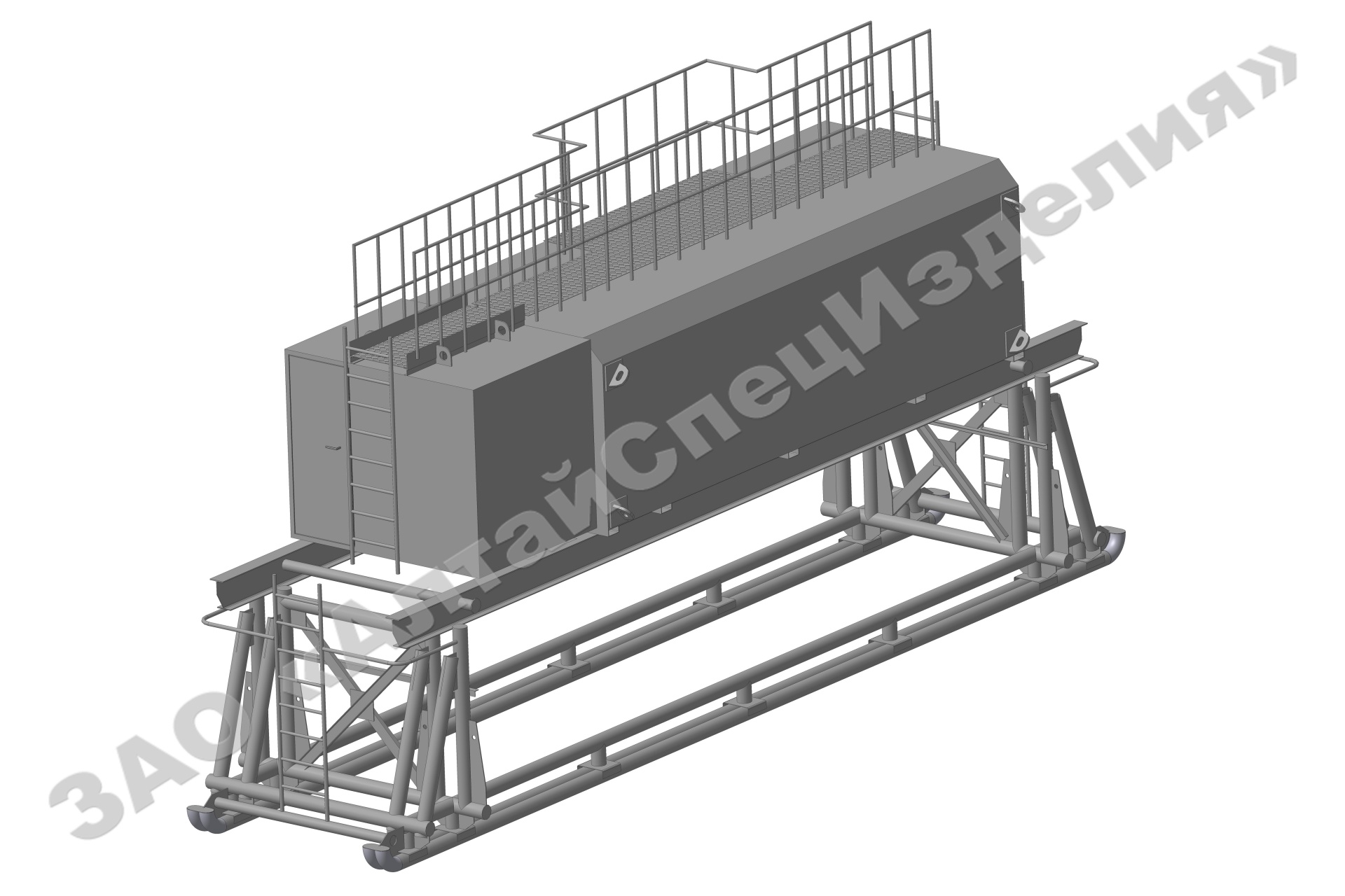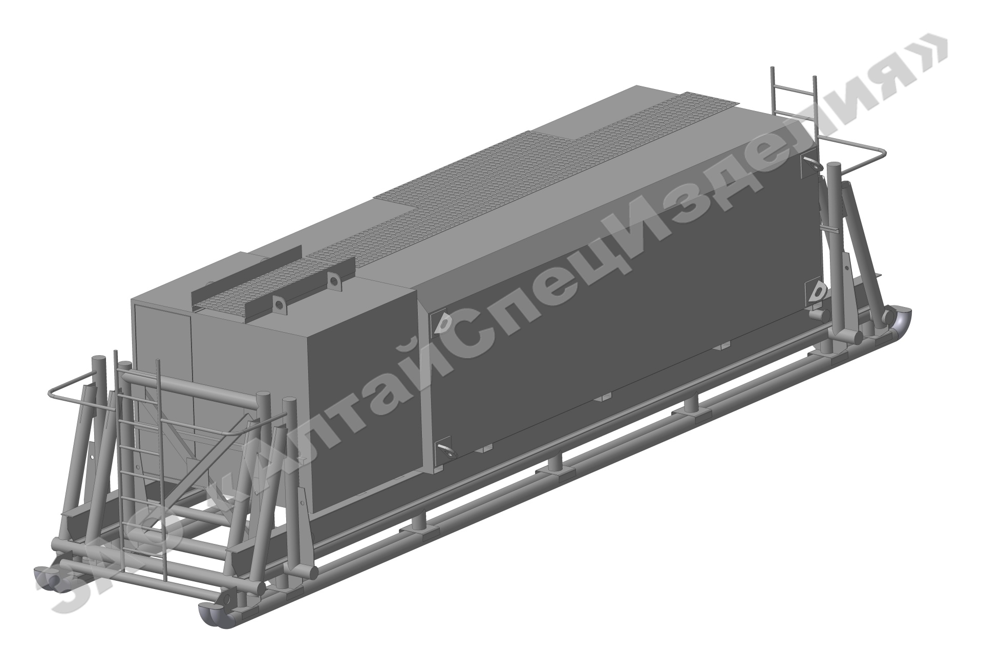 Емкость для воды 32 м3. Водяная емкость с эстакадой, складывающаяся в транспортное положение с емкостью, с паровыми регистрами, предназначена для применения в составе буровой установки, для непрерывного питания водой, входящего в состав буровой установки оборудования, а также для временного хранения воды.