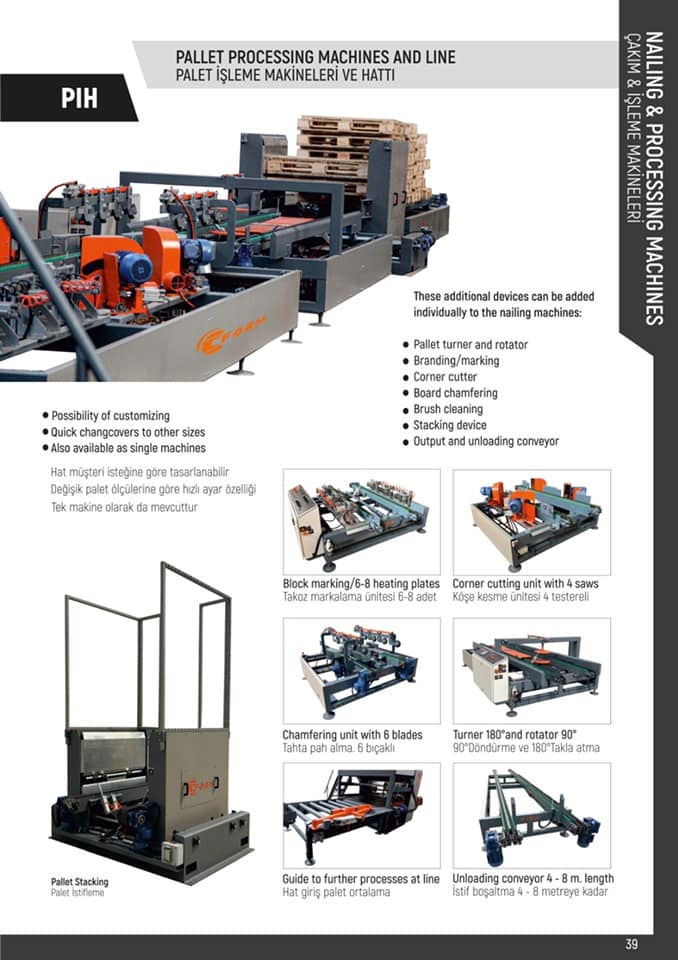 Станок для резки поддонов с 4-х пильным и устройствами. Параупоров для правильного размещения поддона в центре. Стальные рычаги, двигатель управления, двойная пружина. Цепиуавляются электро двигателем.