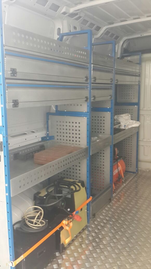 В небольшой объем автомобиля встраиваются - трансформируемые и выдвижные верстаки, стеллажные шкафы в различной комплектации, мобильные лестницы, тиски, баллоны, гидравлические краны, компрессоры, выездные траппы и т.д.
