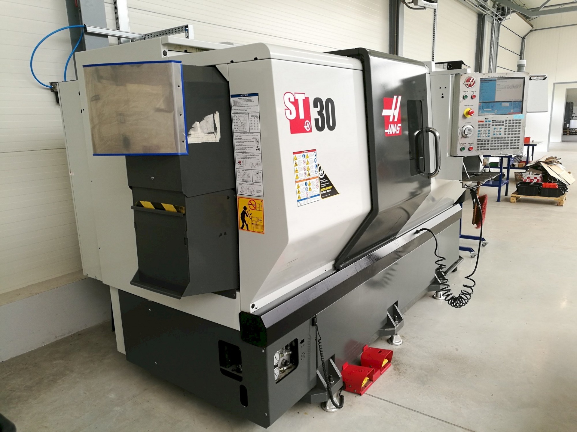 Этот токарный станок HAAS ST-30 был изготовлен в Польше в 2013 году. С тех пор он работает примерно 12000 часов. Он управляется через блок управления M-кода M130 дисплея средств HAAS. Эта машина включает в себя множество дополнительного оборудования стоимостью в несколько тысяч евро.