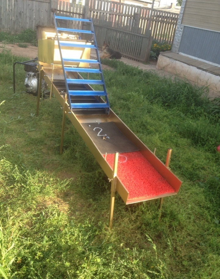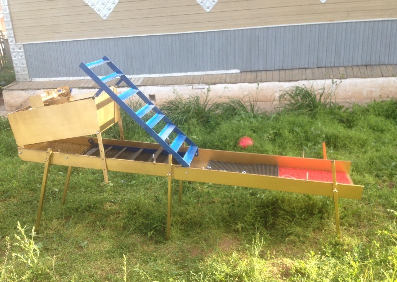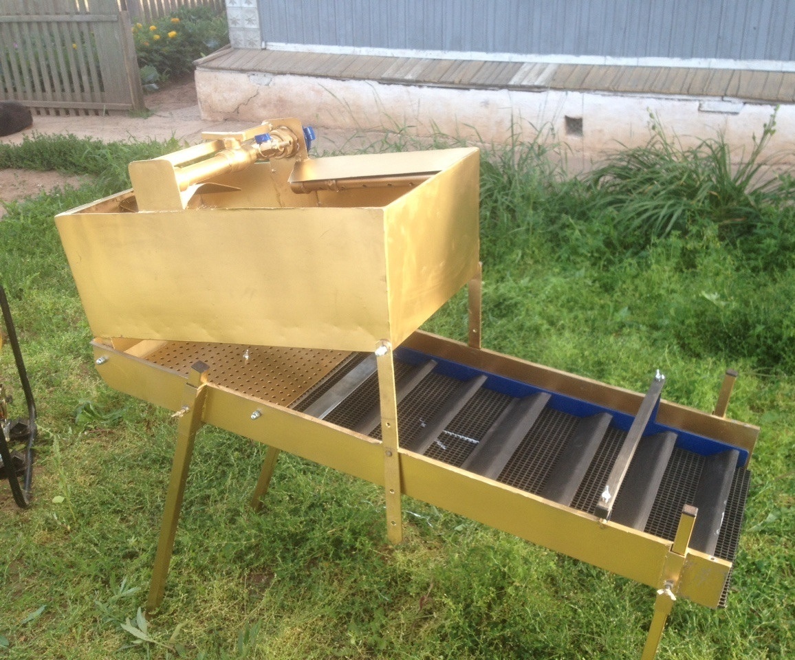 2.Шлюз 4-ка в сборе 2600х400х150 разборный в 2(ковры дражные, мох старательский,сетка,рифли,играющий грохот, ножки,бункер с системой орошения) 1 комплект