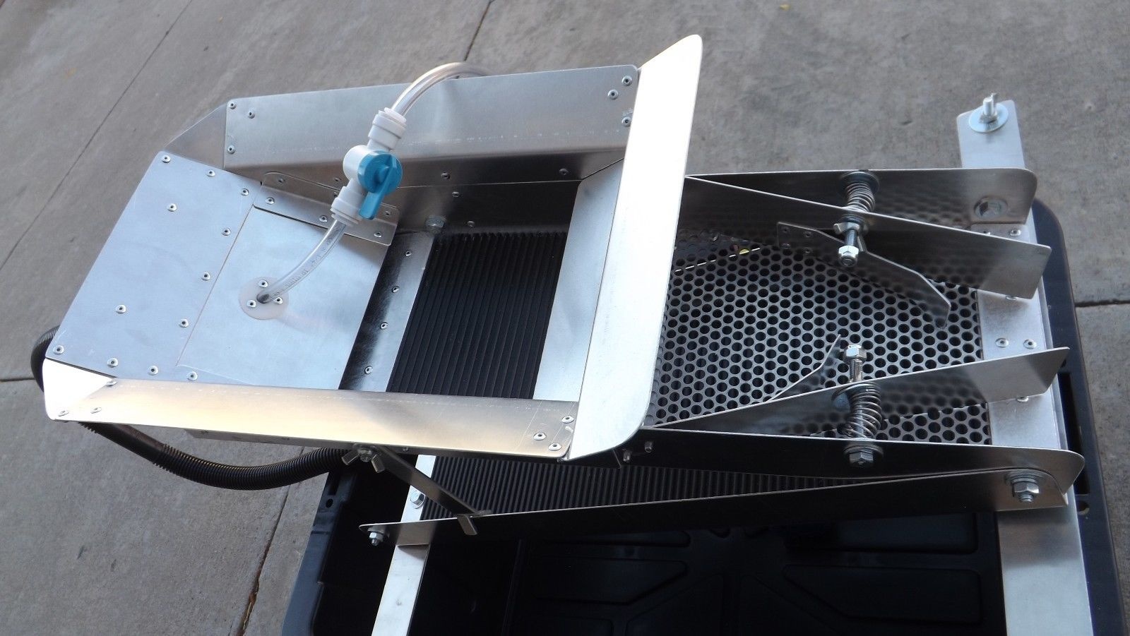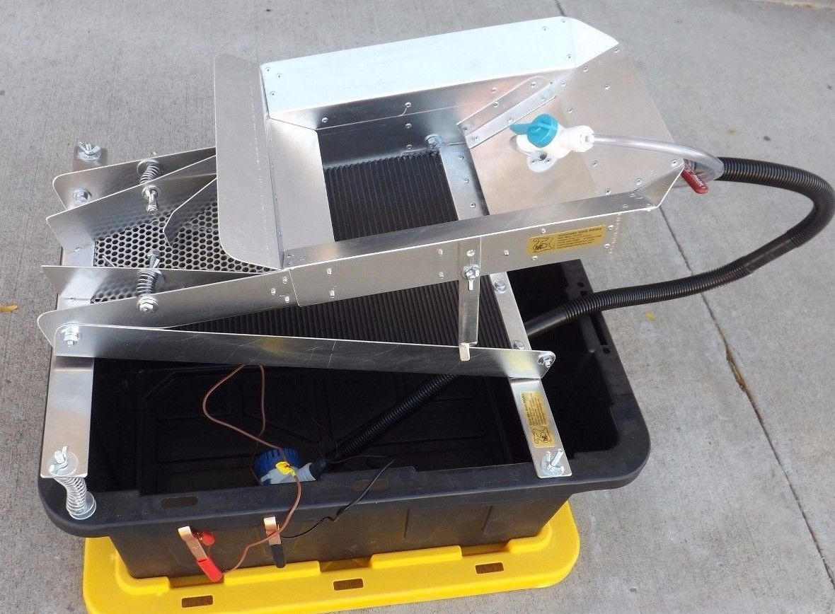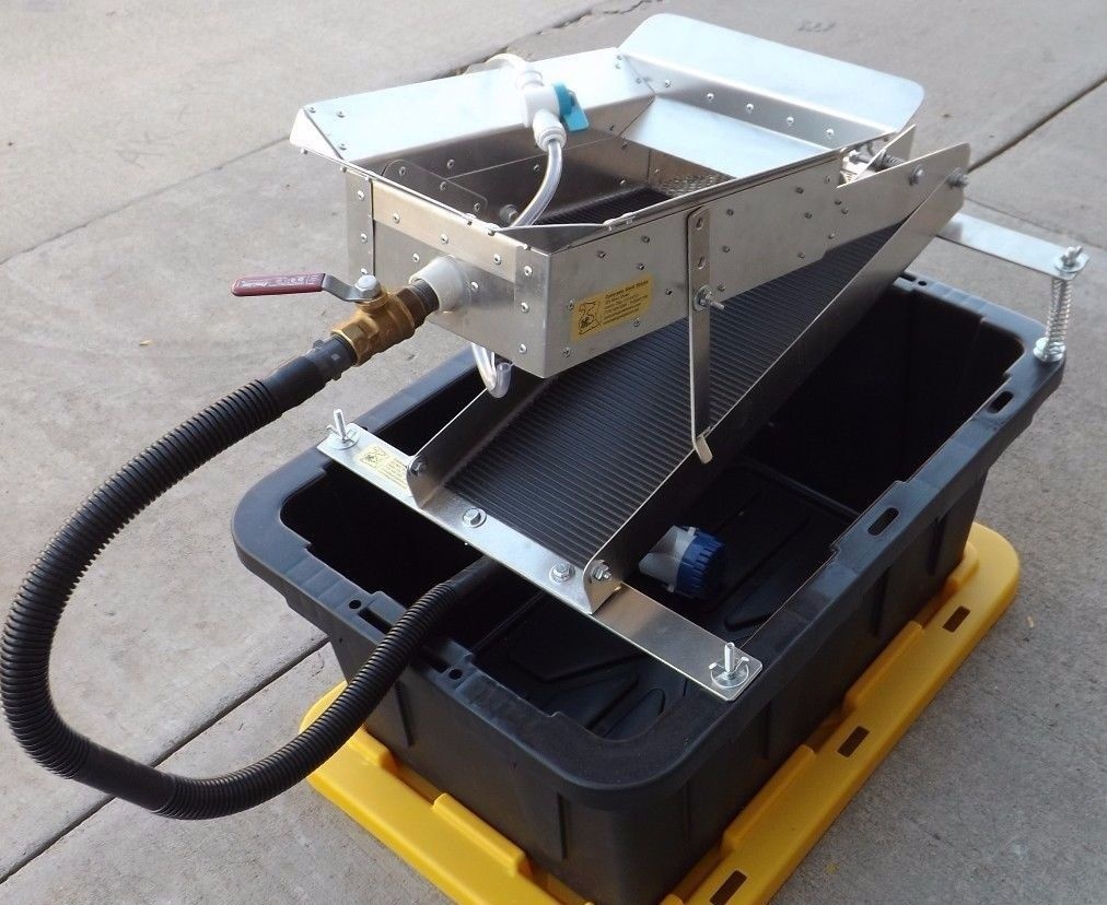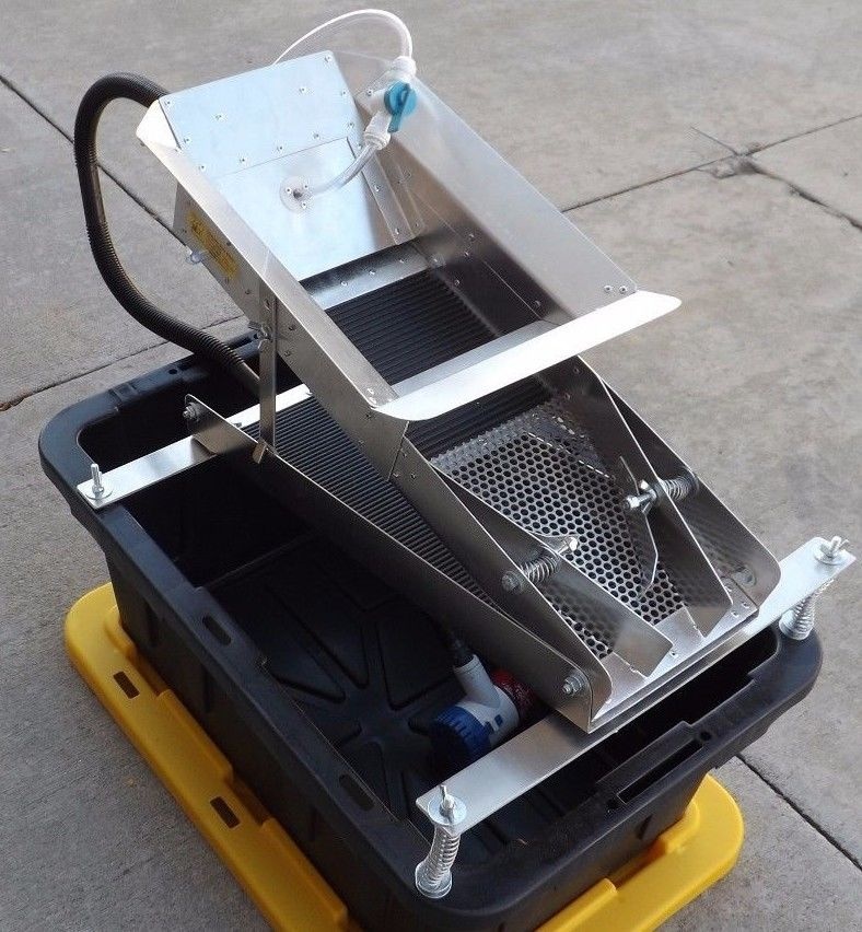 шлюз доводочный для добычи и доводки "Au". Для туристов, любителей старательского дела. Шлюзы изготовлены по точному аналогу американских шлюзов-один в один, изготовлены из железа или алюминия- по желанию приобретателя. Шлюзы застелены дражными коврами, V-образной ячейкой, т.к. для доводки это отличный вариант. В комплект входит погружной насос на 12в и ПВД кейс.