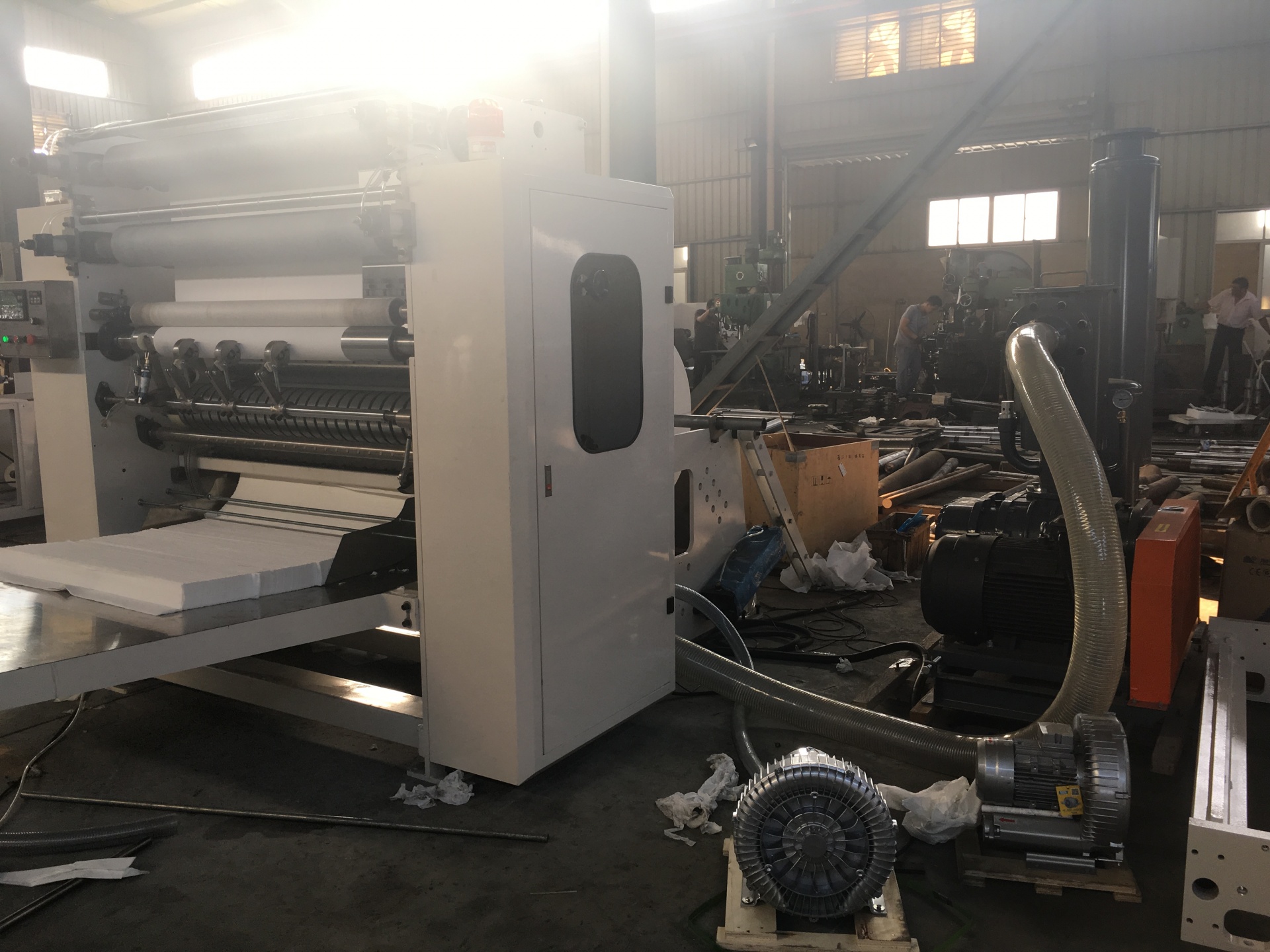 Съемная машина для лицевой ткани - это обрезание тканевой бумаги в интерактивную сложенную салфетку. После нее она становится машиной для стрижки лицевой ткани с выталкиванием. Когда она используется, ее вынимают из коробки по очереди, чтобы сэкономить время. Это современное оборудование для прокачки бумаги. Машина использует вакуумную адсорбцию и автоматическое устройство подсчета и укладки, которое имеет преимущества высокой скорости и точного количества.
