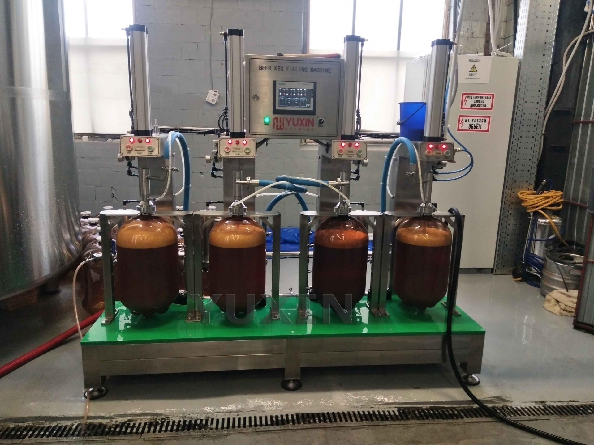 Наполнение кегов происходит на наливной станции. Для этого кег сначала: заряжается СО2 до желаемого уровня давления и затем пиво подается в кег сначала медленно на начальной стадии, затем быстро в основной стадии и замедленно в завершающей фазе.