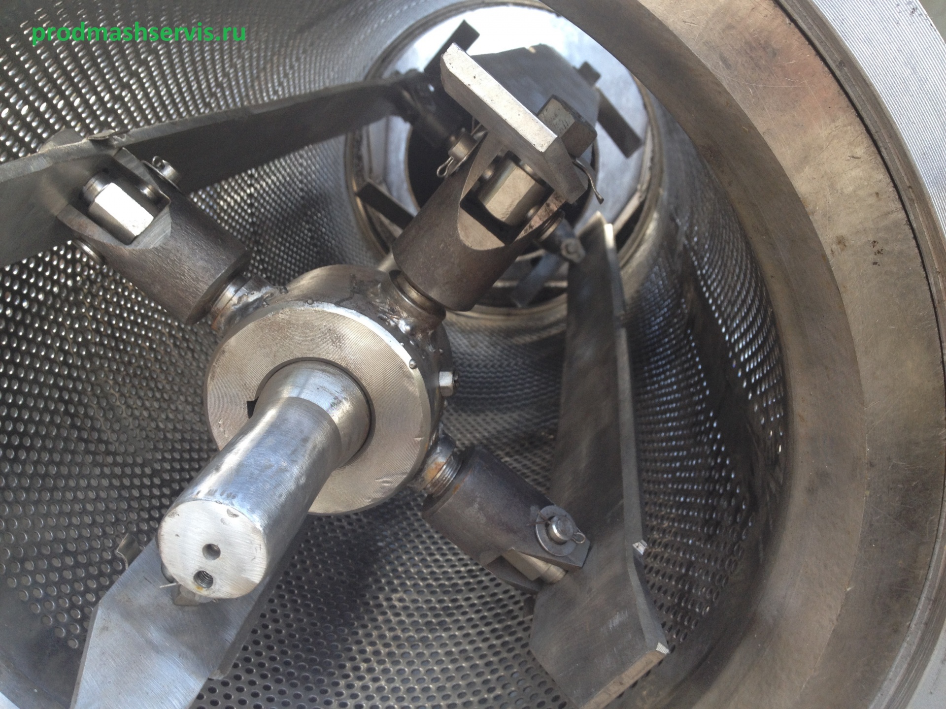 Сырье из загрузочного бункера или по трубопроводу через центральный вход поступает во внутреннюю полость протирочного барабана. Закрепленные на вращающимся валу бичи подхватывают сырье и протирают через ситовую поверхность. Бичи, установленные с определенным углом опережения, продвигают отходы к концу барабана, где они через боковые отверстия выводятся. Протертый продукт по всей длине ситового барабана стекает в наклонный лоток в нижней части корпуса и выводится из машины.
