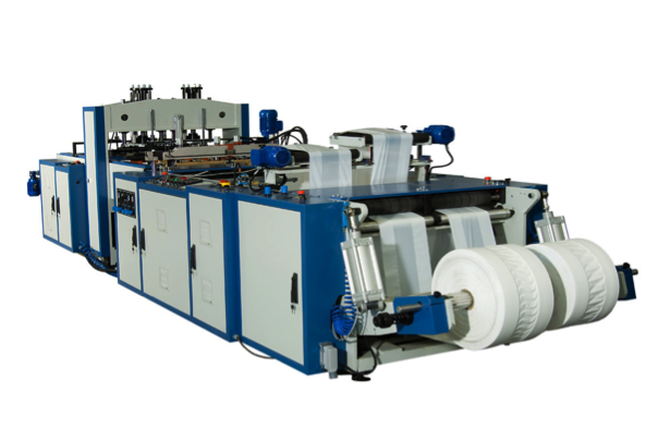 Полностью автоматическая прессовочная машина для разрезания пакетов для маек с двойной линией Имеет сервомотор и инверторную систему Размер пакета, количество пакетов можно изменить при помощи экрана. С экрана можно наблюдать подсчет количества пакетов и скорость работы машины Работат с полиэтиленами высокой концентрации(HDPE), полиэтиленами низкой концентрации (LDPE) и мешками 2-го сорта. Когда рулон закончится, когда оттиск будет находиться не на правильном месте, когда пакеты соберутся в тисках, машина автоматически остановится и на экране появится предупреждение.