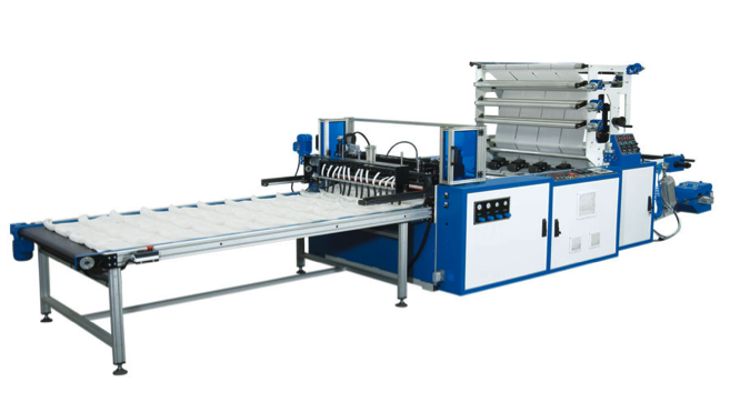 Производит мешки со швом снизу и блокпакеты (процедура перфорирования не производится на этой машине). Имеется система холодного разрезания На 1 см изнутри открытого конца мешок устанавливается на холодную иглу. Разрезанные пакеты будут установлены на конвейере. Линия конвейера и машина стандартные. Имеет сервомотор и инверторную систему Размер пакета, количество пакетов можно изменить при помощи экрана. С экрана можно наблюдать подсчет количества пакетов и скорость работы машины. Имеется 1 фотоэлемент. Разрезает пакеты со штамповкой и без штамповки. Работат с полиэтиленами высокой концентрации(HDPE), полиэтиленами низкой концентрации (LDPE) и мешками 2-го сорта. Когда рулон закончится, когда оттиск будет находиться не на правильном месте, когда пакеты соберутся в тисках, машина автоматически остановится и на экране появится предупреждение.