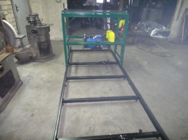 Дополнительная секция рельсового пути при монтаже к пилораме ДУП-500 дает возможность распиливать бревна большей длины. Секция изготовлена из профильной трубы 40х60 мм стенка 3 с направляющим уголком сверху. Для выставления уровня (горизонта) рельсового пути секция оборудована регулировочными болтами. На каждой секции дополнительно установлен замок для крепления бревна.