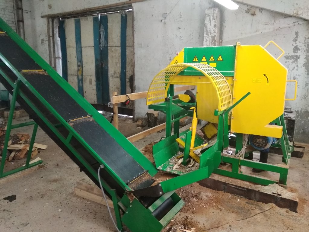 Установка представляет сварную конструкцию, на которую установлена дисковая пила, предназначенная для распила бревен на мерные заготовки. Длина дров регулируется механической заслонкой от 250 до 500 мм.