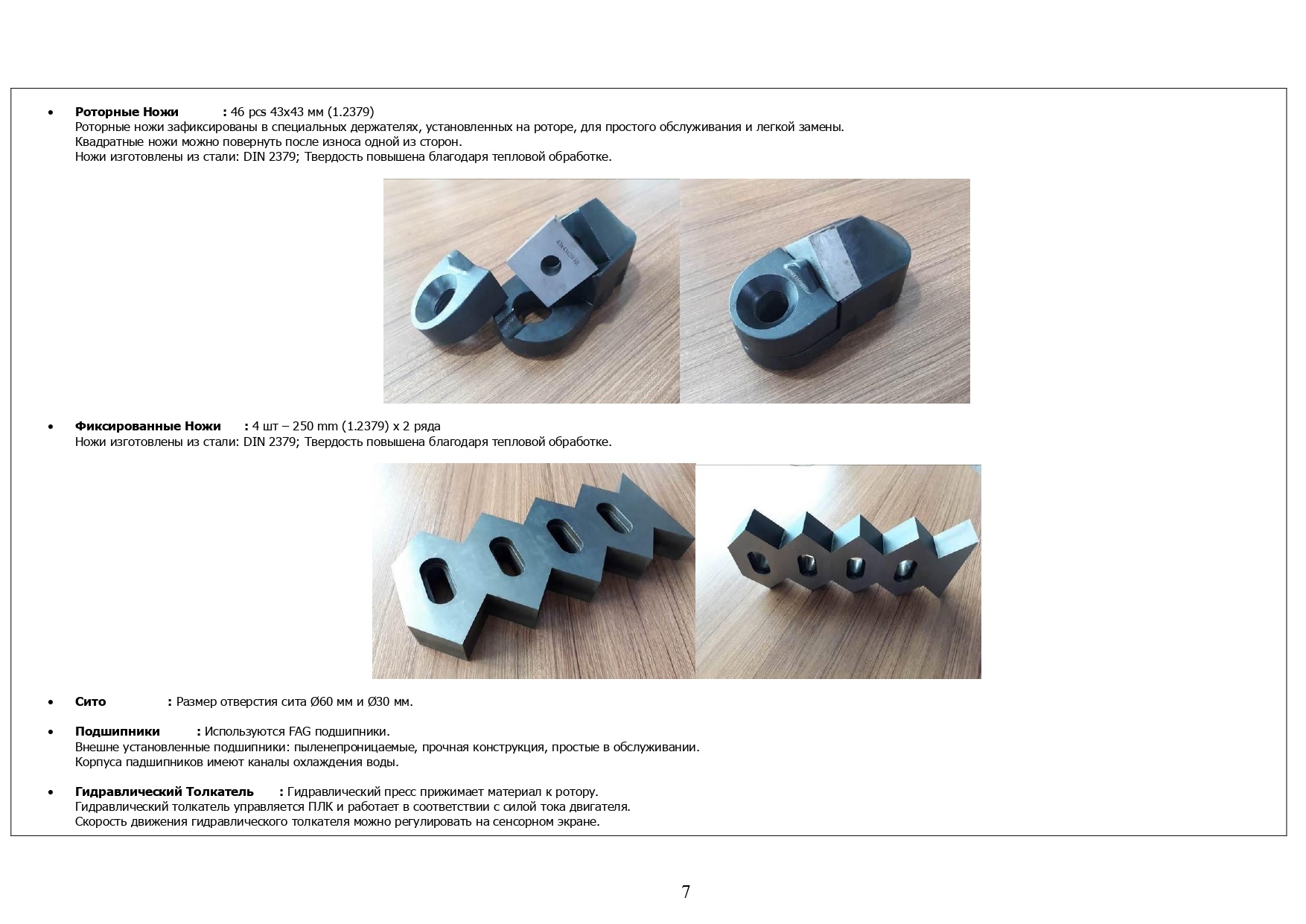 · Фиксированные Ножи : 4 шт – 250 mm (1.2379) x 2 ряда