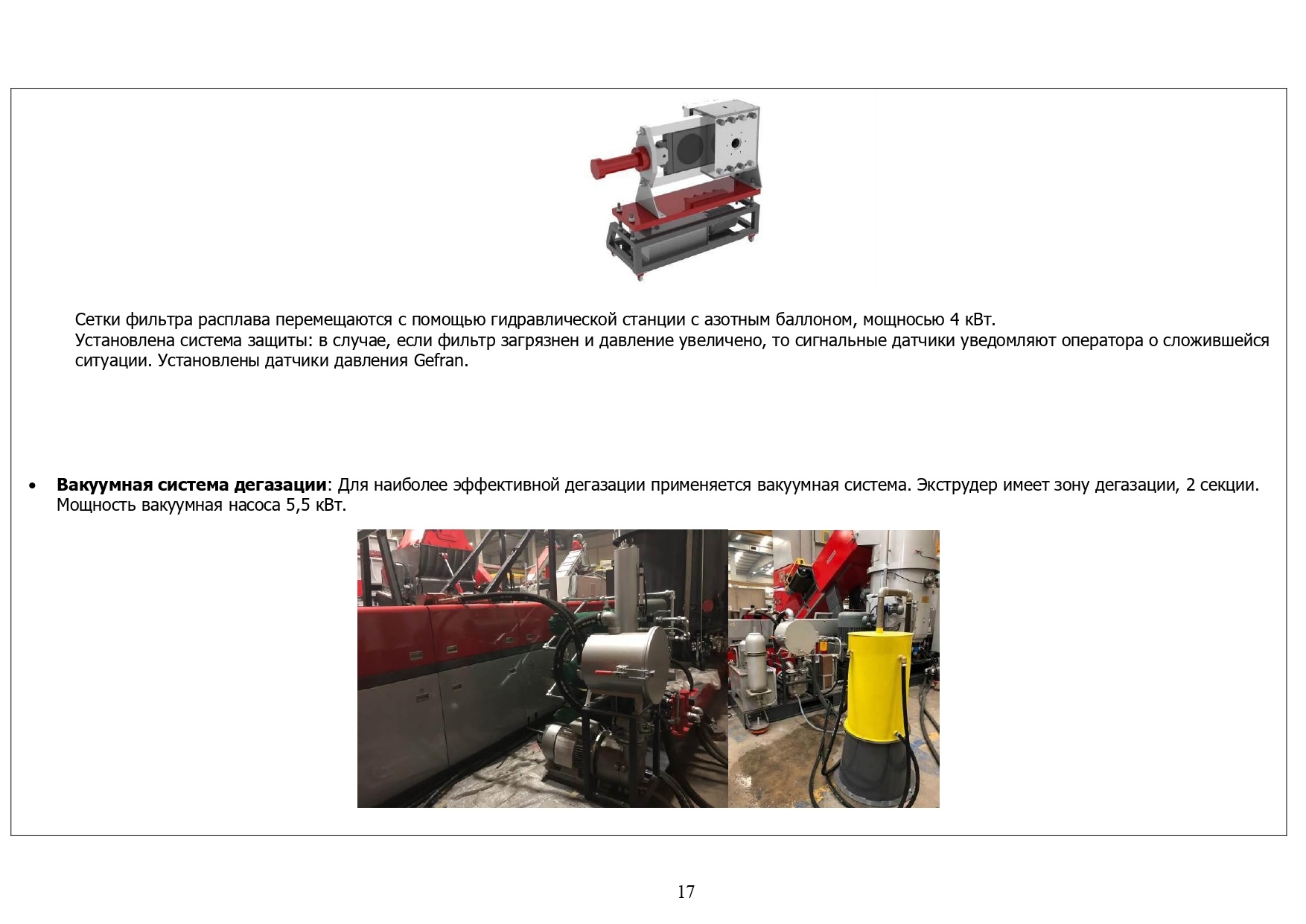 · Вакуумная система дегазации: Для наиболее эффективной дегазации применяется вакуумная система. Экструдер имеет зону дегазации, 2 секции. Мощность вакуумная насоса 5,5 кВт.