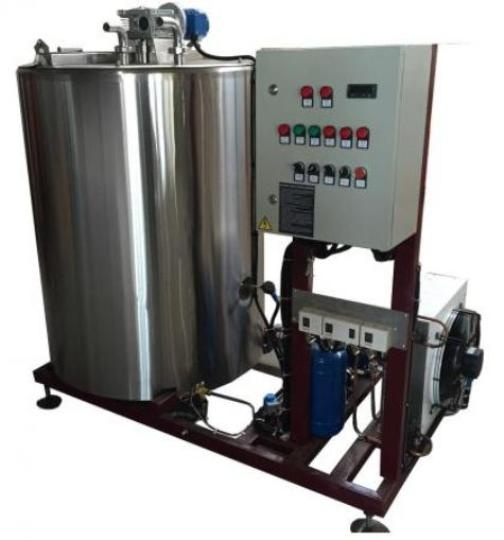 Аналогичная установке DeLaval, изготовлена из нержавеющей стали AISI 304. В отличии от оригинала усилена рама и установлен более надежный компрессор. На вале мешалки установлен маслоотбойник (убирается опасность попадания масла в случае выхода из строя редуктора мешалки). Теплообменная рубашка фреон-молоко изготовлена по технологии ТВЧ точки, толщина 3 мм + 1 мм. Рабочее давление рубашки - до 18 атмосфер и изготавливается на координатном столе с ЧПУ. Холодильный агрегат герметичного типа Danfoss-Maneurop (Франция), конденсатором Гран (Россия), трехфазным мотор-редуктором червячного типа NMRV/NMRW (Россия, Италия) и удобными крышками. Установлена промышленная ротационная моющая головка. Время охлаждения молока (часов) при 40% загрузке, от начальной температуры 32°С до конечной 4°С, при температуре окружающей среды +25° - 3 часа. Автоматически поддерживается температура молока с помощью микропроцессорного контроллера EVCO с точностью, 1 °С (+/-).