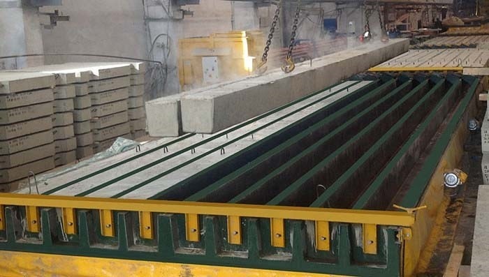 Как только бетон уложен сепараторы удаляются, а плиты удаляются и хранятся с помощью балансировочного балка и крана.