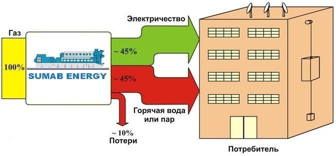 Это оборудование не только вырабатывает электричество с точно заданными характеристиками, но и как побочный продукт - тепловую энергию (когенерация).