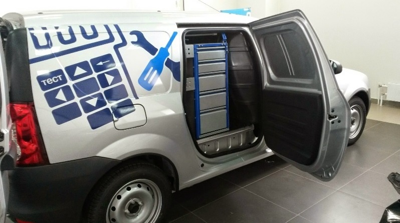 В небольшой объем автомобиля встраиваются - трансформируемые и выдвижные верстаки, стеллажные шкафы в различной комплектации, мобильные лестницы, тиски, баллоны, гидравлические краны, компрессоры, выездные траппы и т.д.