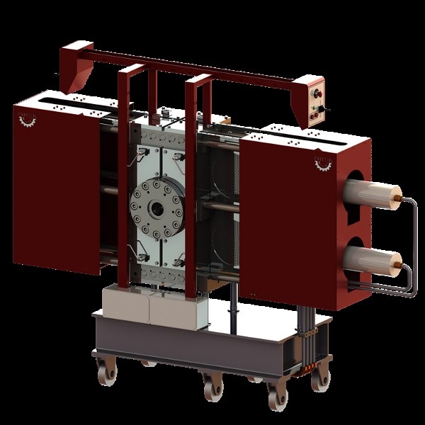Сетки фильтра расплава перемещаются с помощью гидравлической станции с азотным баллоном, мощносью 7,5 кВт.