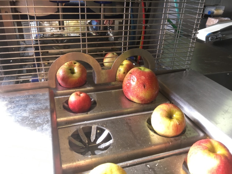 КОНФИГУРАЦИЯ ЯБЛОК: стандартная версия машины настроена для оптимальной работы с яблоками диаметром от 60 до 90 мм, тем не менее, возможна конфигурация для большего ассортимента яблок.