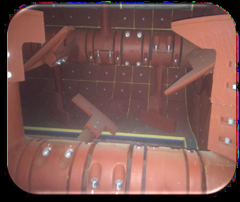 Нижняя и боковая внутренняя плита из износостойкого металла Ni Hard толщиной 12 мм, минимальная твердость 600 HBW;