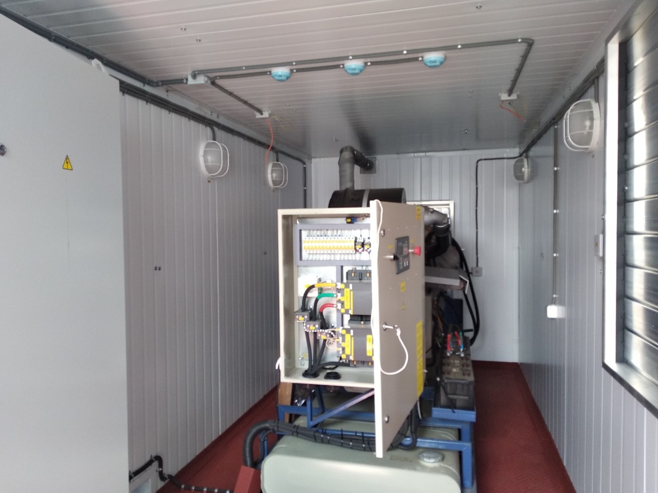 ЩСН – щит (система) собственных нужд. Штатно освещение контейнера электростанции выполнено двумя настенными светильниками – 24 В, и двумя настенными светильниками – 220 В (работающими от основной сети либо от генераторной установки). Выключатель освещения находится внутри контейнера ;