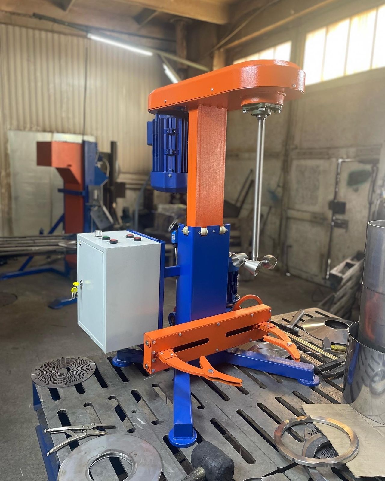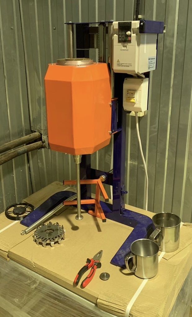 Предназначен для пробного диспергирования различных компонентов при производстве красок, смешения пигментов, красителей и других материалов средней твердости в жидких средах.