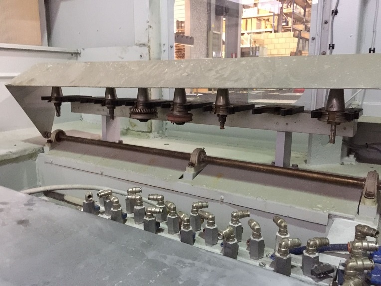 Стеклянная заготовка закрепляется горизонтально на рабочем столе станка с помощью вакуумных присосок. Рабочий инструмент, вращаясь, перемещается на подвижном мосту, повторяя контуры заготовки, обрабатывая при этом кромку стекла. Охлаждение инструмента и заготовки во время работы осуществляется с помощью воды, подаваемой в рабочую зону. Во время работы может автоматически меняться рабочий инструмент.