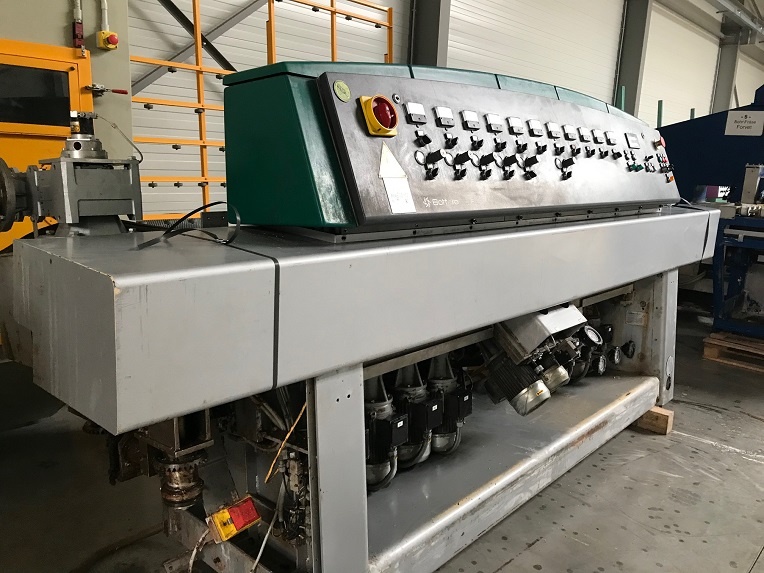 Мощный современный 11-шпиндельный станок большой производительности. Очень популярный среди стеклообработчиков, один из лучших на рынке. В очень хорошем состоянии. Задний конвейер на подшипниках.