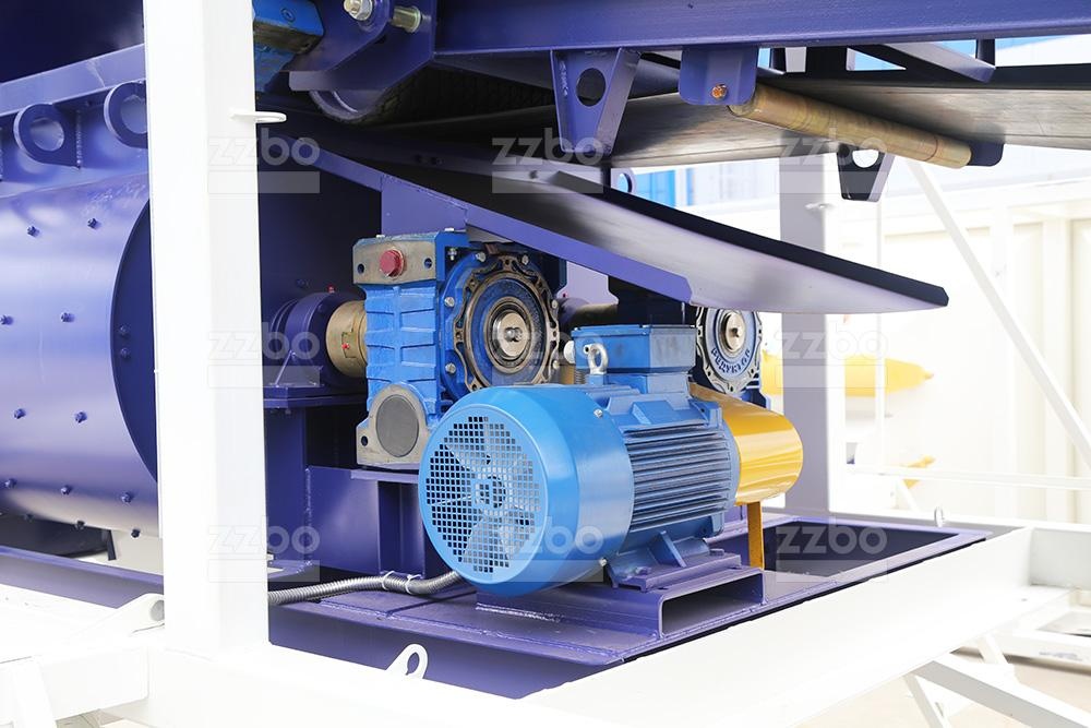 Объем 750 литров. Бетоносмеситель принудительного типа, двухвальный. С горизонтальным расположением валов. Общее количество лопастей — 14. Мощность привода смесителя 11 кВт. Вращение валов с частотой 36 оборотов в минуту.