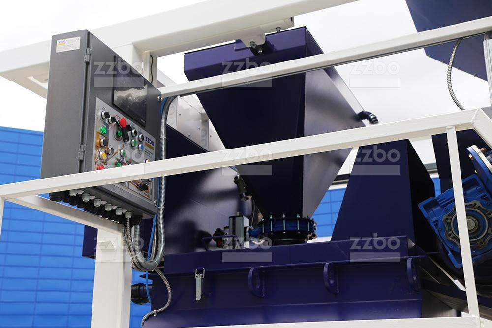 Дозатор цемента на 300 кг снабжен пневматической заслонкой Camozzi, и вибратором встряхивателем Oli. Дозатор весовой расположен на трех тензодатчиках Cas (Ю. Корея)